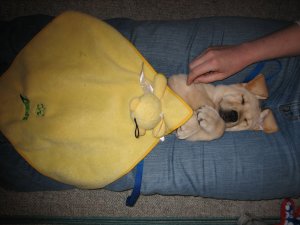 March 19 — Our first night at puppy kindergarten class was…mellow. Truman had just had his nine-week puppy shot, so he was deceptively calm and gave no resistance when I cradled him.