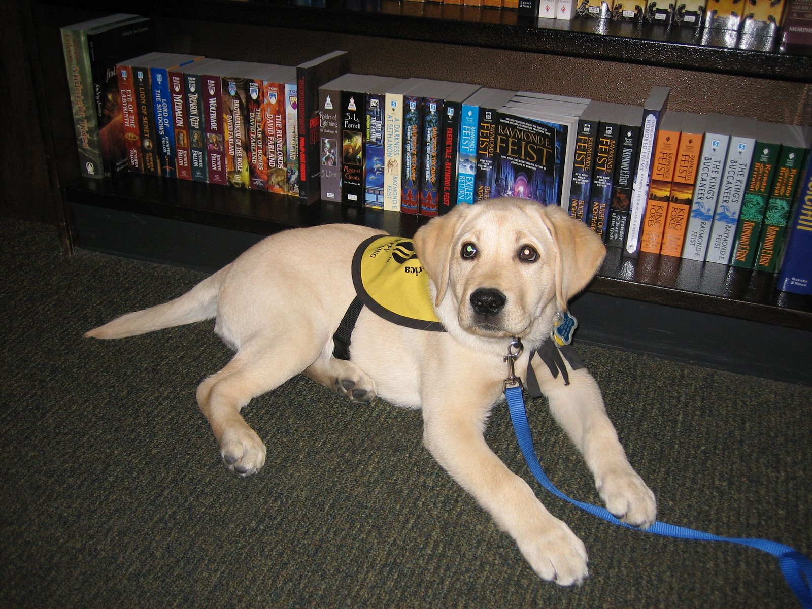 He refused to pose in front of the books on dog training, so we went with my favorite fantasy author instead. Truman is, after all, a little “Feist”y.