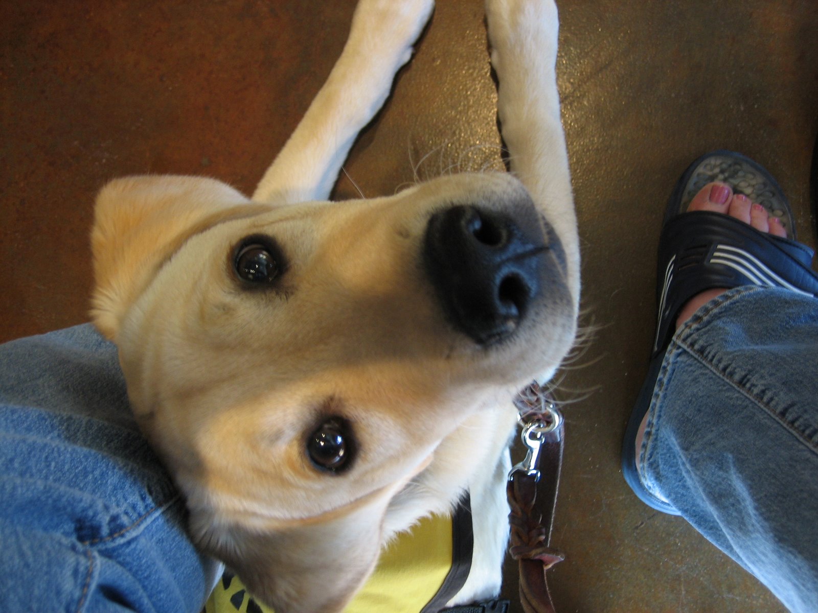 While Truman was busy chasing Paige and “getting his wiggles out” at Matt & Amy’s house on Saturday, Tai and I had snuggle time and ran a few quick errands. Sunday afternoon, Truman had a lovely 3-hour kennel nap while the rest of us joined other puppy raisers at a showing of Pirates of the Caribbean: At World’s End. Truman did, however, manage to join us for dinner at El Torito, where he snored away contentedly on the tile floor, despite being in close quarters under the table with three other dogs he knows.