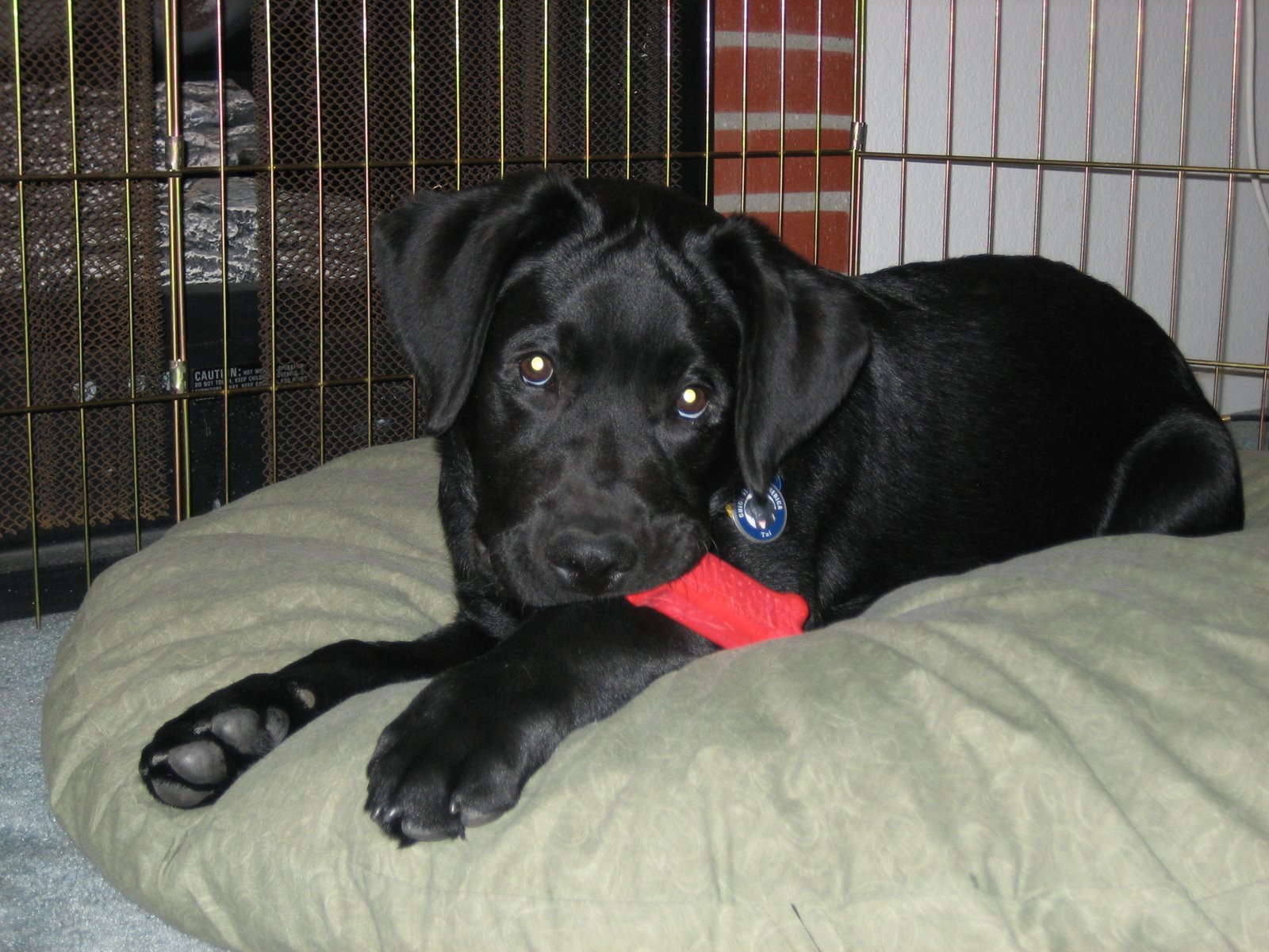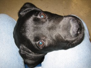 This weekend we traded brother for brother, Truman for Tai. I enjoyed hosting the little black dog! Okay, not so little: at last check, four-month-old Truman weighs 34 pounds, and Tai weighs in at an even more studly 38.8 pounds. In addition to their sturdy builds and handsome faces, the boys have more than a few things in common. For example, they BOTH know how to play innocent for the camera. Perhaps you see the resemblance….
