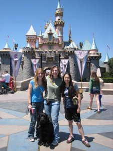 GDA has a rule about theme parks: puppies must be twelve months or older to go. So unfortunately, when we learned that Natalie was coming to the Happiest (and Most Expensive) Place on Earth, both Joanna and I knew we were in the same boat — our little ones would be too little to attend. So while Camry was at a puppysitter’s house and Truman was in his kennel at home for a few hours, the two of us headed to Disneyland to meet a fellow raiser from another country, with whom we’ve become acquainted via dog-blogging. (This is why the Internet is cool!)