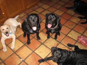June 24 — It’s good to have friends. My puppy group area leaders are wonderful people who always seem to have a house full of Labs, whether the dogs belong to them or not. I guess that’s what happens, though, when you live near several members of your puppy group. And when you are qualified to administer puppy shots.