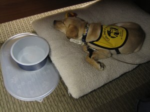 Jethro did pretty well on day one, and settled quickly into his “corner office” under my desk. Who wouldn’t? I’ve had days where *I* wanted to settle into his comfy-looking corner office.