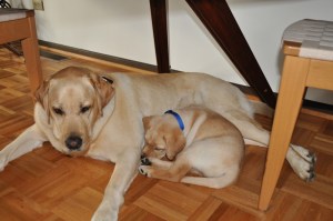 Truman, of course, is our permanent dog and will be making the trek with us, but you may be wondering what will happen with Jethro. He will be coming with us as well! We’ve been granted permission to take him to PA with the understanding that we will be responsible for transporting him back here for his evaluations, turn-in, etc. It’s an unusual situation, and let me make the official disclaimer here that GDA owns Jethro, and this permission-to-move may be reconsidered at any time, for any reason, at their discretion. For now, I’m just grateful for the possibility. Moving across country will be stressful, and while a puppy in the midst of that will also bring its own chaos, I think I would be heartbroken to have to give the little guy back now. He’s a good dog; I’d like to raise him all the way to turn-in if I can, and hopefully see him graduate.