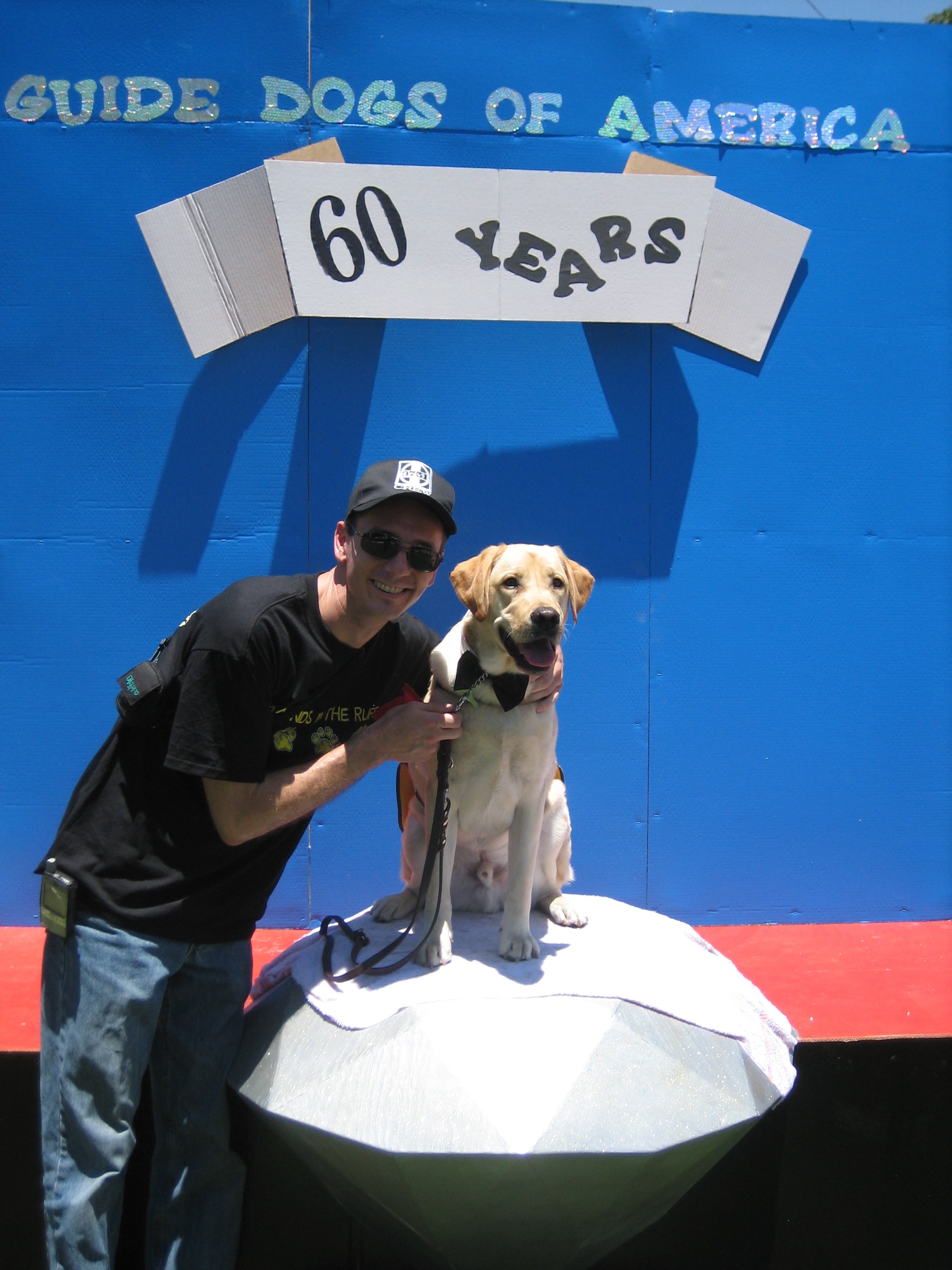 Truman is always supremely happy to see other dogs (I sometimes wonder if he would have eventually become too dog-distracted for guide work, even if he had passed his medical and continued in training, but since that point is more “what if” fodder than anything else, we’ll move on). We figured out a game plan to introduce them without overwhelming the little guy, who probably had to pee something fierce after the long trip down the 405, or overwhelming the big guy, who probably had to pee something fierce after waiting for us to come home. While Wolf took Truman out the front door to do his business, I’d sneak Jethro through the garage and upstairs onto the balcony, where he could do his.