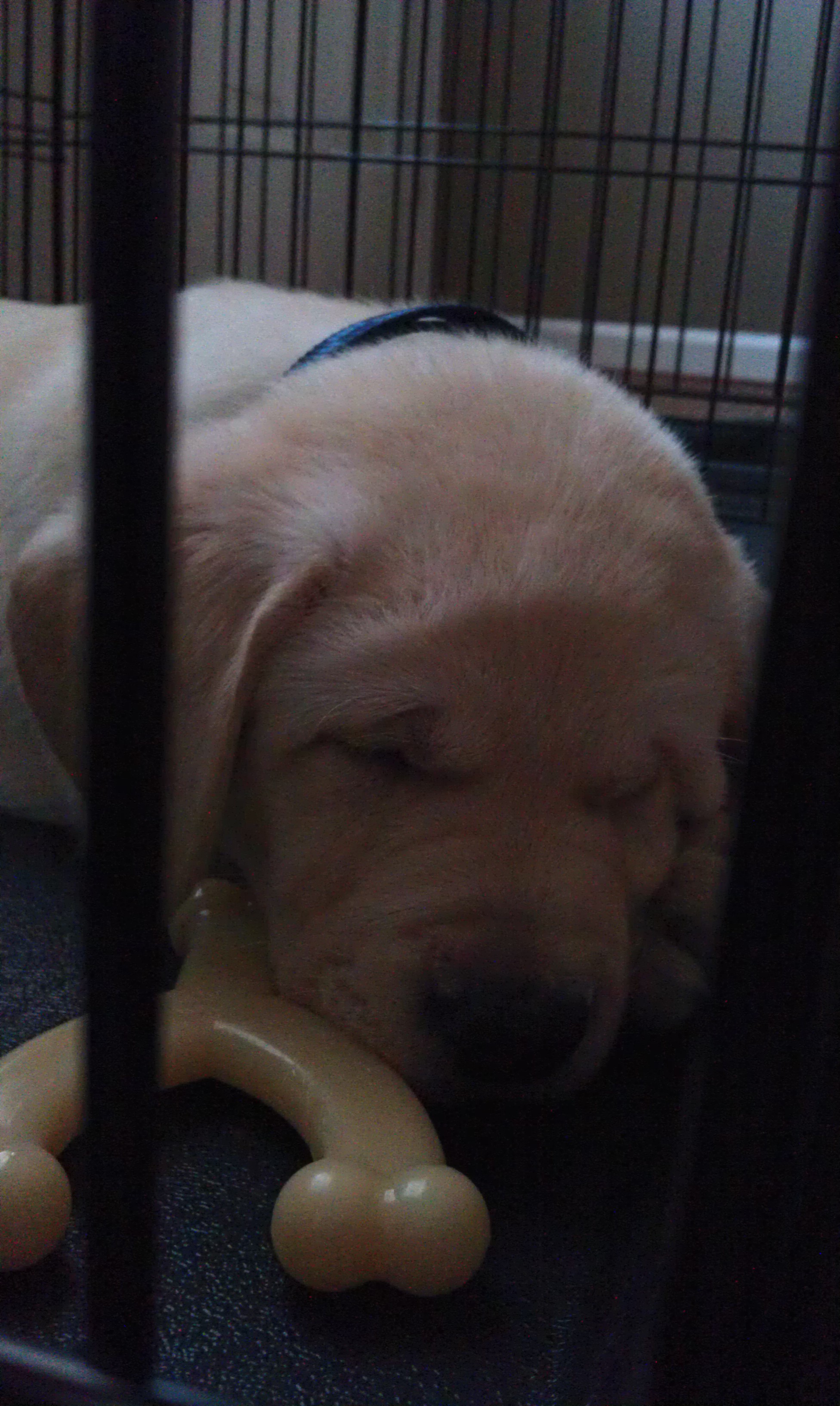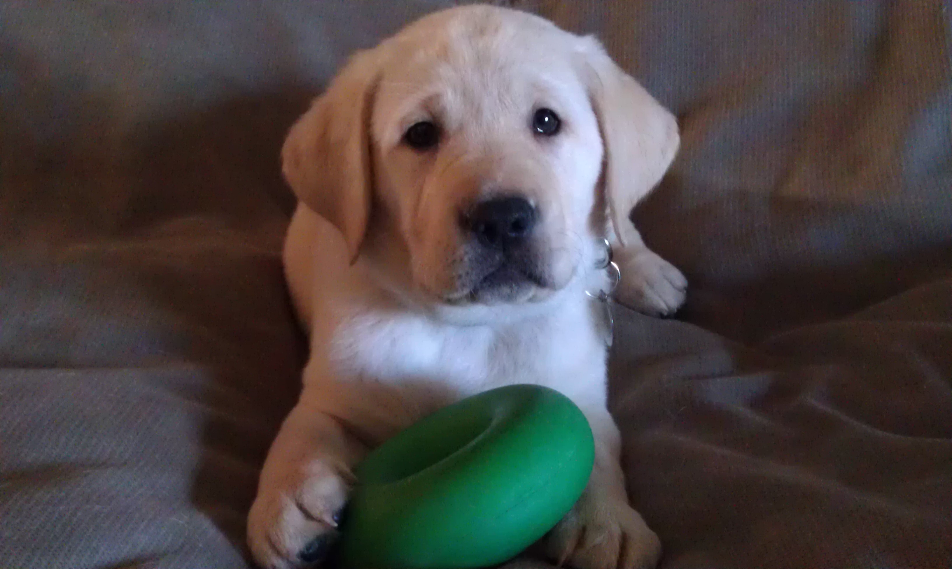 Little Sonny is a sweet, cuddly puppy. He’s easy to pick up and hold. He’s picking things up quickly and seems to respond to his name and “sit” already. Relieving on hard surfaces is coming along, but sometimes it takes him a while. He’s not too bitey, not yet hoovering too much (though he has a specific taste for cabinet and drawer knobs/handles) and he doesn’t jump inappropriately, even when he’s excited. But I can tell that he’s got confidence, and a stubborn streak (in a Labrador? SHOCKING).