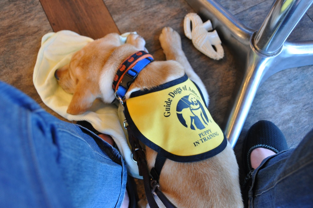 So, to catch you up, yesterday was quite a different experience from my GDA puppy pickup days. I didn’t know as far in advance when I was getting a puppy, I didn’t get to choose his name (though I’m really happy with Sonny! Who knows where else that could have gone?), and I didn’t go to the school to get him. GDF is in New York, but they have a number of OOA (out of area) puppy raisers, so this is pretty routine for them. At least I’m within reasonable driving distance, and didn’t have to deal with getting my little guy at an airport! Fortunately, my Area Coordinator, who has been knowledgeable and helpful throughout the process, was able to bring him right to my house.